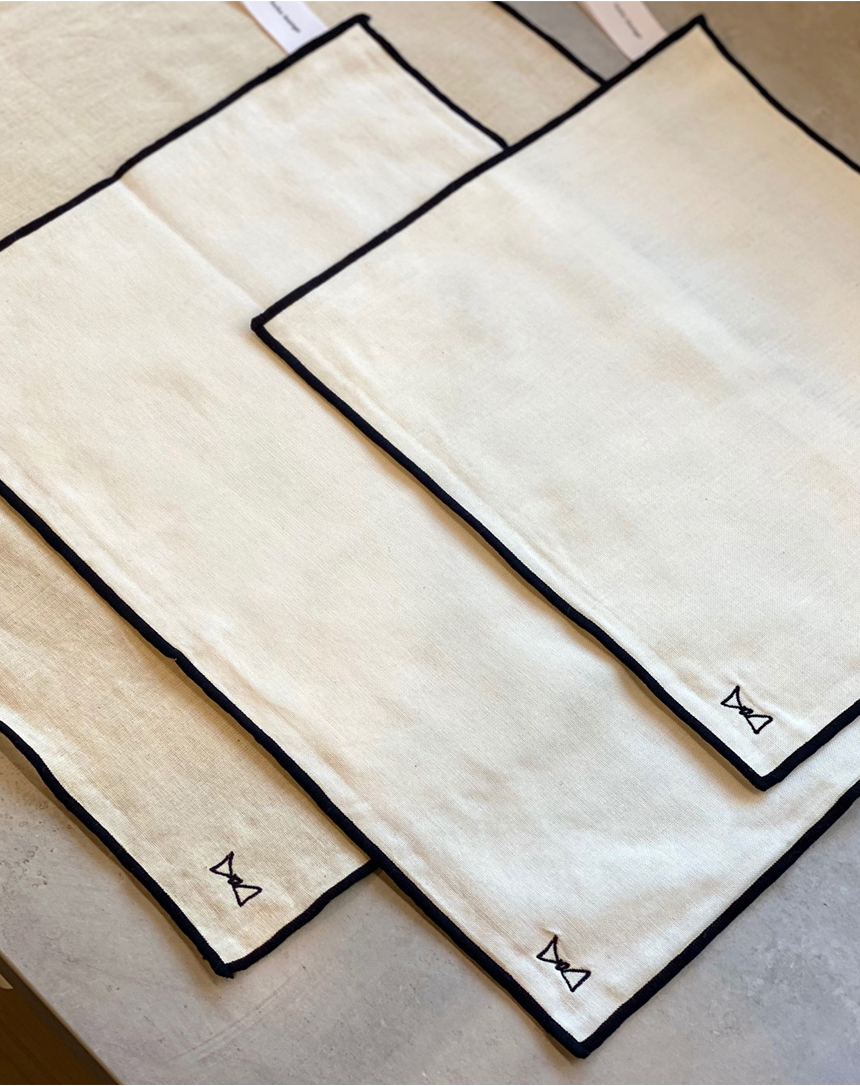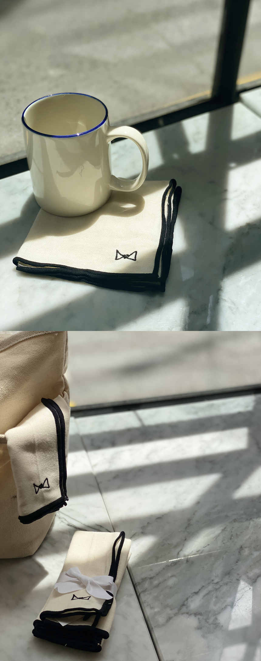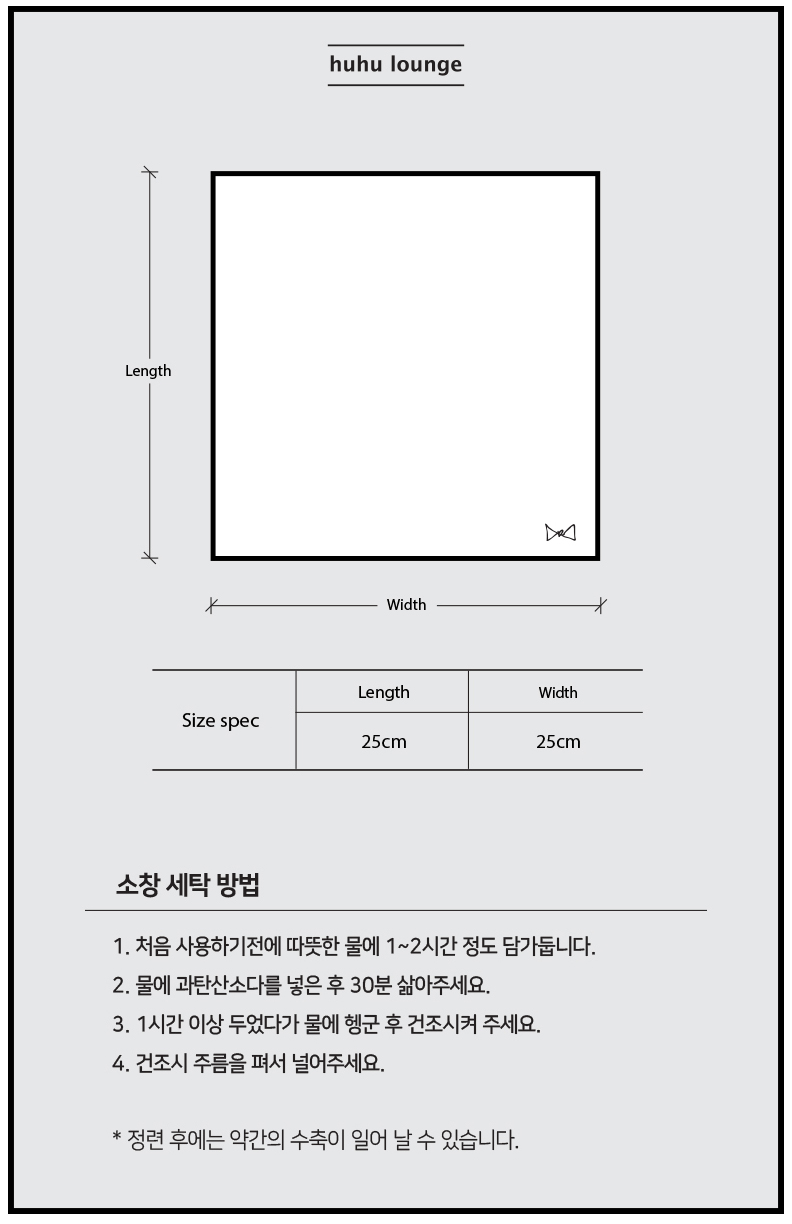 심플한 리본 자수와 편리성을 위해 왼쪽 상단에 고리를 달아 걸어서