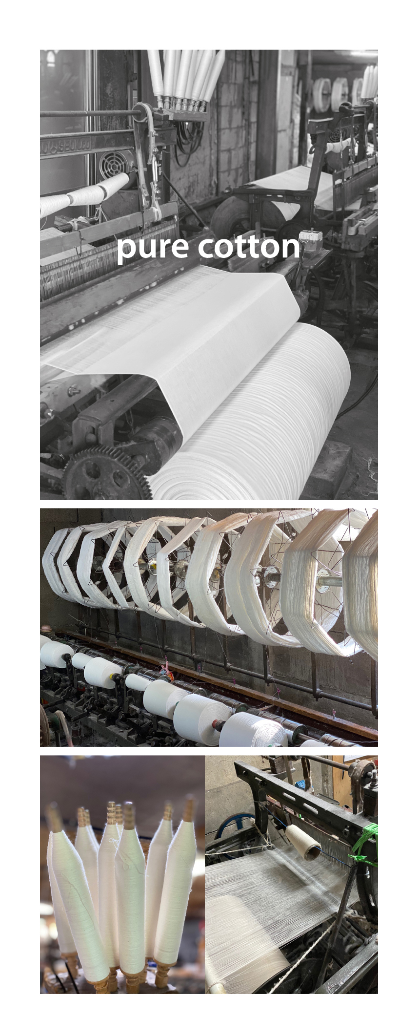 통시성이 좋은 평직 기계를 통해 소창 원단이 만들어집니다.